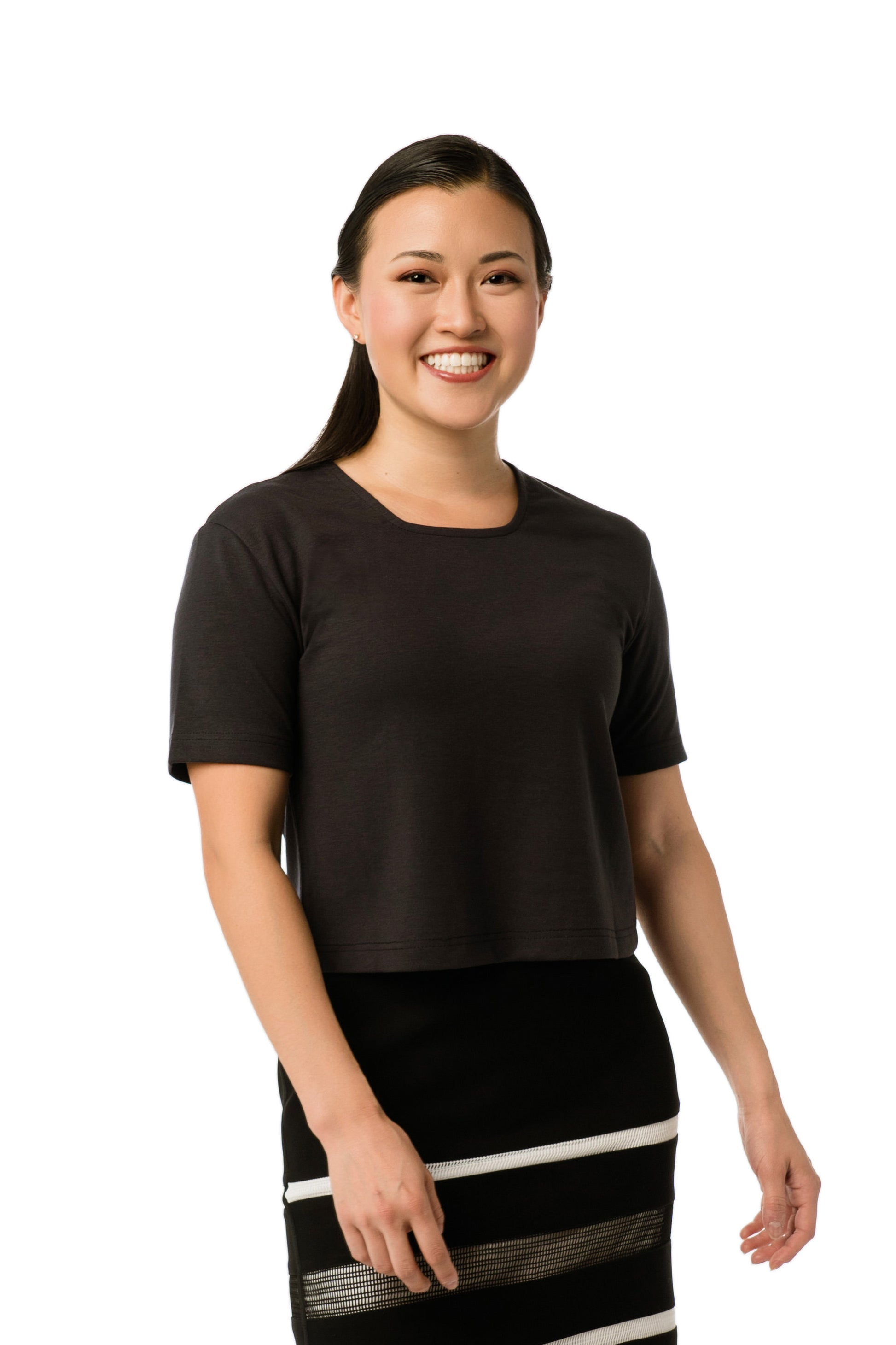 Our Joyful reversible cropped blouse is perfect for any conscious closet. The cropped blouse is reversible to feature two necklines for ultimate versatility. The first neckline is a flattering square neckline with enough coverage to wear to work but enough room to accessorize. The second neckline is a classic scoop neck that offers a classic style to pair with your favorite pieces. The boxy fit and elegant fabric allows for comfort and effortless chic style.