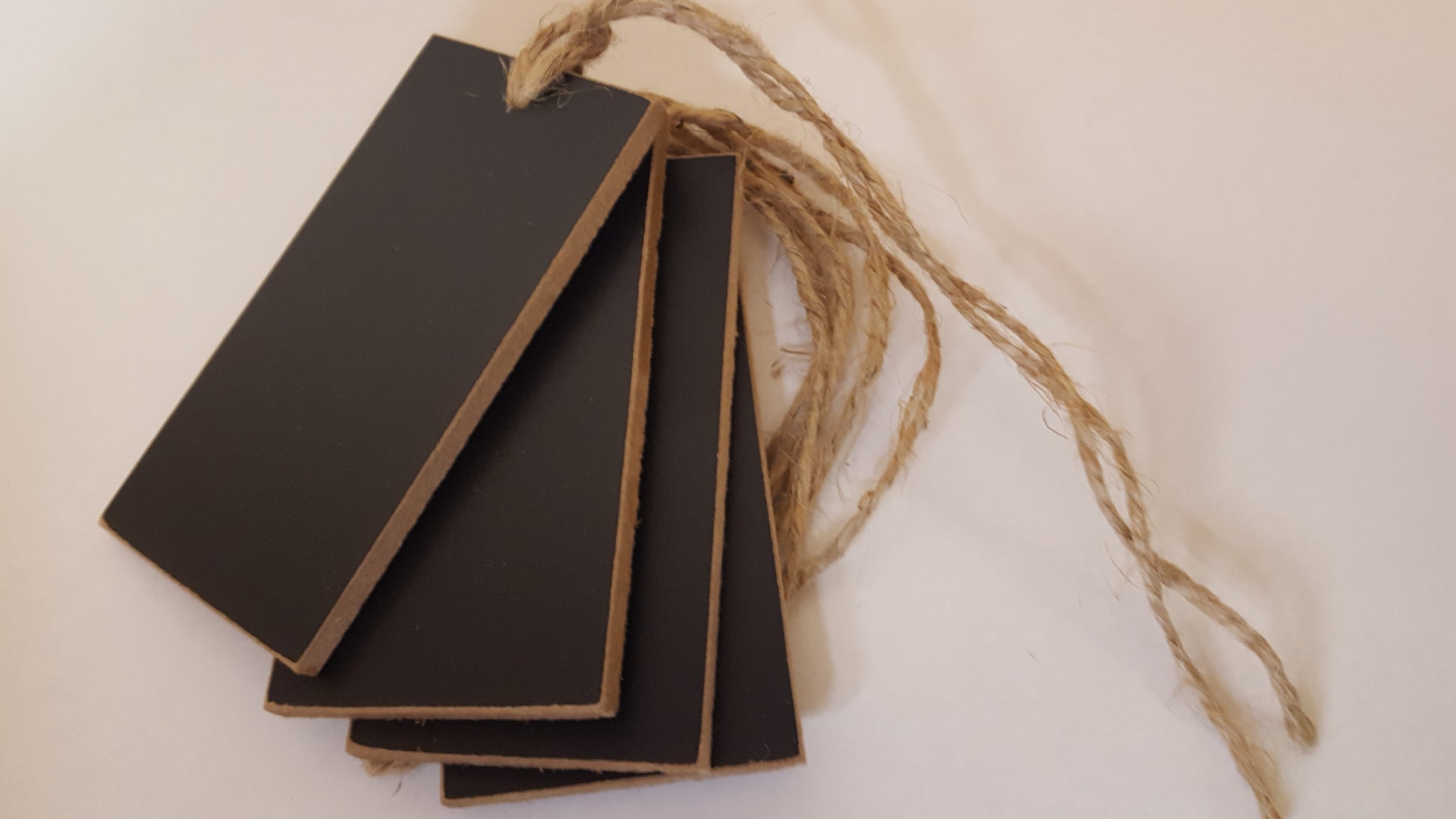 - A set of four chalkboard tags perfect for home, office, or displaying mantras and intentions